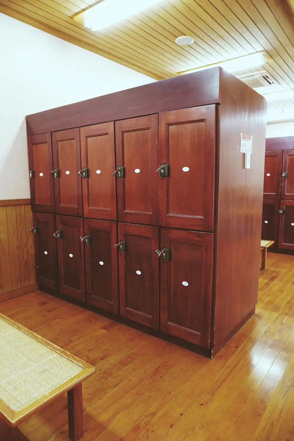まずは、レトロなロッカーのある女湯。ドライヤーなどもありました。広々していて家族づれにもおすすめ。ゆっくり温泉利用ができます。