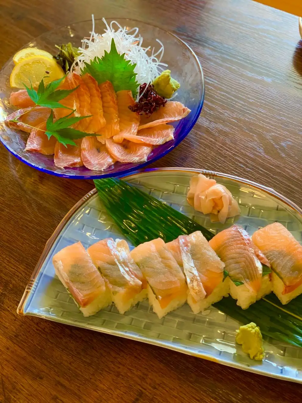 温泉でさっぱりした後は、しっかりご飯!館内のお食事処では、西米良村で養殖されたサーモン料理を提供されていました。