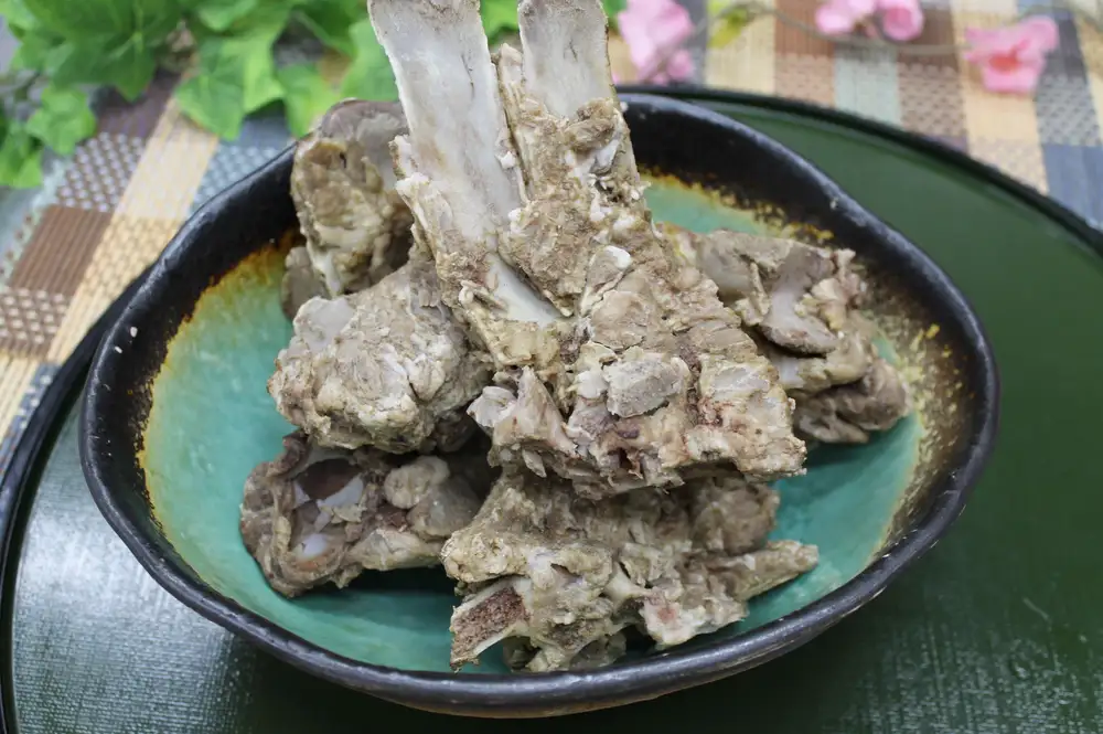 とにかく広い、好みに合わせて選べるテントサイトと、敷地内に温泉あり!という最高のキャンプ場でした。春になると予約も多いそうなので、気になる方はチェックしてみてください。ここ、湯前の郷土料理の代表といえば「ほねかじり」。豚(昔は猪?)の肉をとった後のガラ をコトコトと煮込んで味付けした料理。長時間煮こまれた骨の周りについた肉は、ポ ロポロとほぐれるくらい柔らかく味もしみています。湯前町の飲食店では提供されていたり、スーパーにも販売されているところもあるそうです。